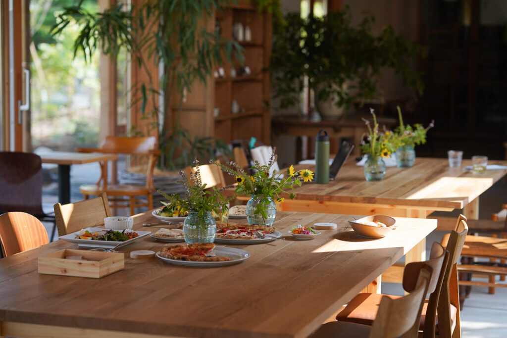 お腹と心を満たすランチタイムとのんびり過ごすティータイム。カフェエリアでは大きなギャザリングテーブルがあります。仲間と共に食を愉しむ豊かな時間をお楽しみください。季節やお天気の良い日には、テラスや中庭にて心地よい時間をどうぞ。▶︎caffetteria